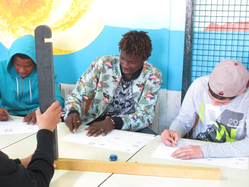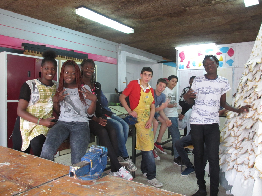 A cover for an existing carport and a sharing table, for the same space, were developed at AlcabidecheSchool, with the 7D and 8C classes.