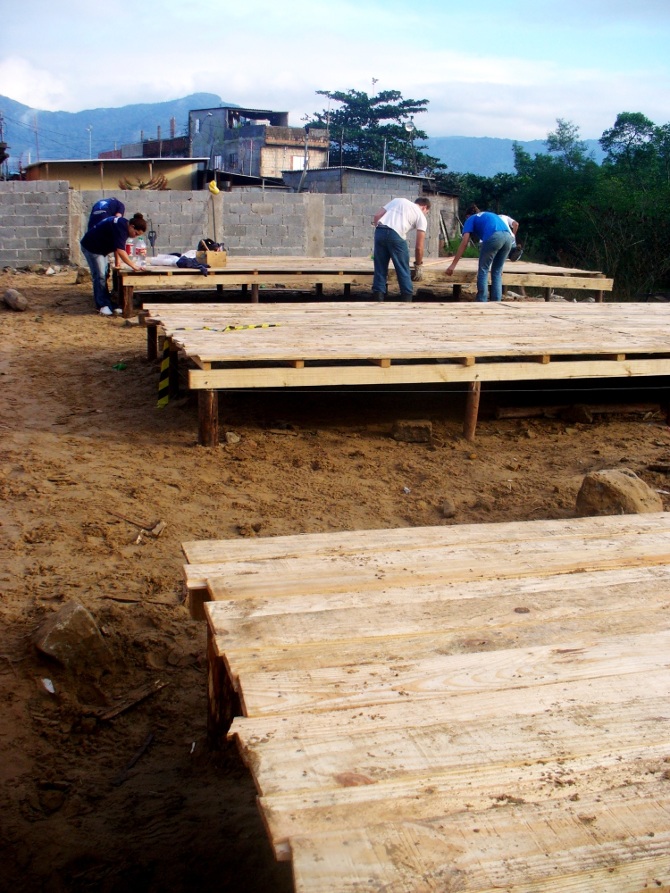 In the weekend of May 21 to 23, from 2010, were built 15 houses on the community Jd. Irmã Dolores, in São Vicente, Brazil. Were 15 new beginnings for the 15 families that live in extreme poverty conditions and that the previous houses were destroyed by a fire.
