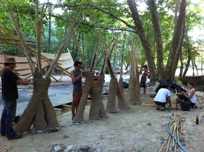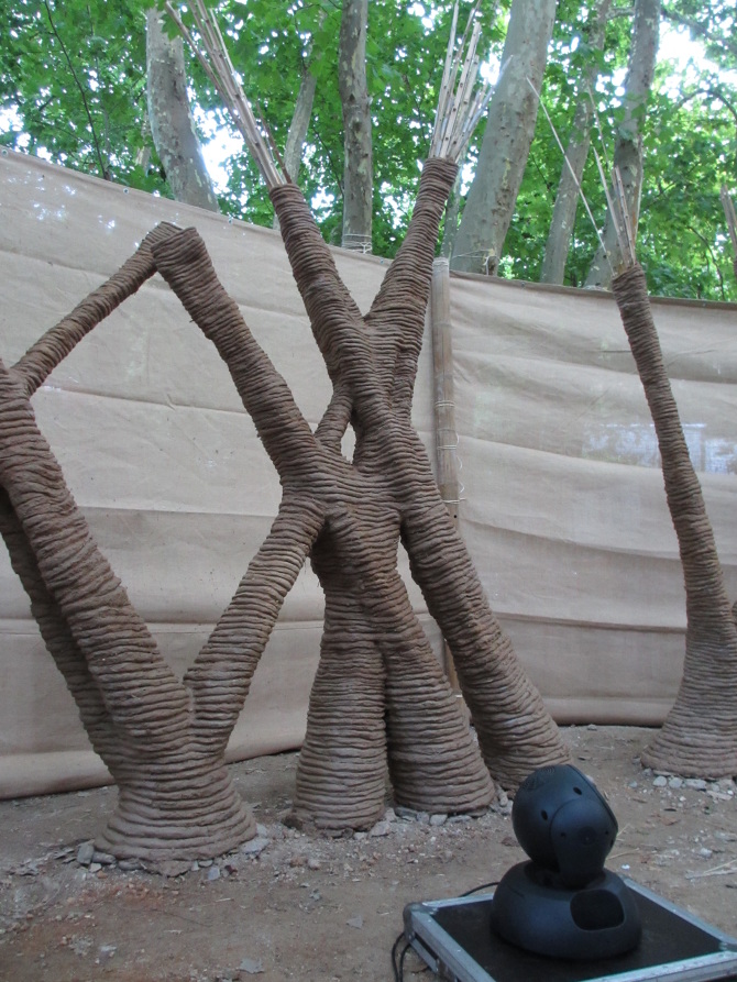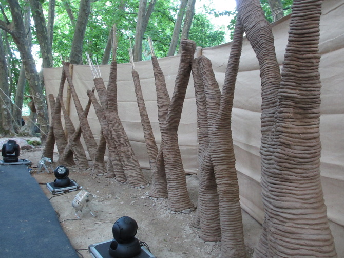 The project consisted in the earth grid integration as a constituent part of the scenery of the Chill Out area. The construction of the structure involved a parametric design being adjusted by the local constrains. The main raw material was extracted from the site - raft, reeds, clay, sand and straw. The software’sthat were used to create the algorithm and the model were Rhino and Grasshopper.