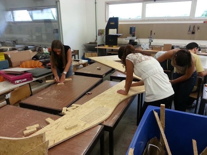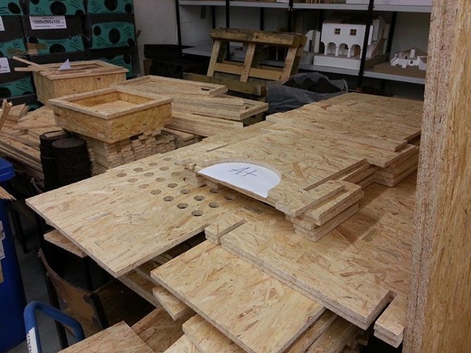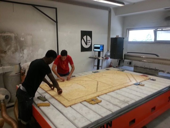 Offices: A+LBY Architects; Argot + 1/2Atelier; Atelier Base; Ateliermob; Like Architects. The material was OSB, cut in VFabLab and donated by Madeivoga.